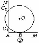 (2)将图①中直线AN向右平移,与⊙O相交于C1、C2两点,⊙O与AM的切点仍记为B,如图②.请你写出与平移前相应的结论,并将图②补充完整;判断此结论是否成立,且说明理由.