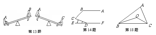 18.如图,在△ABC中,∠ABC与∠ACB的平分线相交于O点.若∠BOC=130°,则∠A = .
