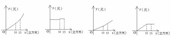 10、我国水资源非常缺乏.为了鼓励居民节约用水,某城市自来水公司在经过听证会后决定分段收取水费:若每户居民每月用水在10立方米以内,则每立方米收水费是0.83元;若超过10立方米,则超过部分的水费按每立方米1.23元收费.那么,居民每月的用水量x(立方米)与水费y(元)的函数图象是( ).