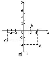 例1 在坐标系中,如图2,指出A点、B点、C点坐标,同时指出各点所在的象限.