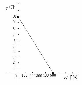 某种摩托车的油箱最多可储油10升,加满油后,油箱中的剩余油量y(升)与摩托车行驶路程x(千米)之间的关系如图所示: