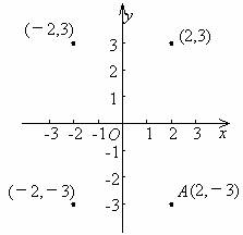 例3 在直角坐标系中描出点A(2,-3),分别找出它关于x轴、y轴及原点的对称点,并写出这些点的坐标.观察上述写出的各点的坐标,回答: