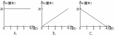 2.一枝蜡烛长20厘米,点燃后每小时燃烧掉5厘米,则下列3幅图象中能大致刻画出这枝蜡烛点燃后剩下的长度h(厘米)与点燃时间t之间的函数关系的是( ).