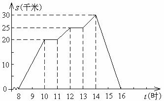 4.周末,小李8时骑自行车从家里出发,到野外郊游,16时回到家里.他离开家后的距离S(千米)与时间t(时)的关系可以用图中的曲线表示.根据这个图象回答下列问题: