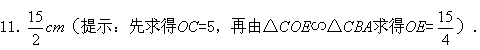 11.将矩形纸片ABCD沿折痕EF对折,使点A与C重合.若已知AB=6cm,BC=8cm,求EF的长.