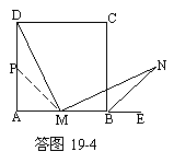 45.如图19-4,将△BMN以∠DMN的角平分线为轴翻折至△PDM的位置,即取AD的中点P,连结PM.从而△MPD≌△NBM,故DM=MN.