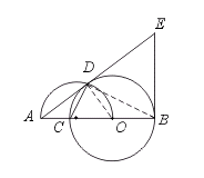 以线段OA为直径的半圆交⊙O于点D,过点B作AB垂线与AD的延长线交于点E,
