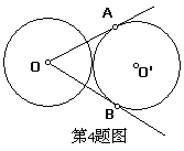 4.如图,两个等圆⊙O和⊙O′外切,过O作⊙O′的两条切线OA、OB,A、B是切点,则∠AOB等于 ( )