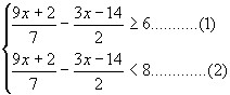 13.3[x-2(x-7)]≤4x ;