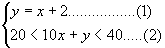 由题意可得:20<10x+(x+2)<40,