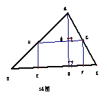 14、某家具厂有一种如图所示的木板余料,已知BC=24cm,BC边上的高AD=16cm,现在要这种余料上截出一块矩形木板EFGH,使E、F在BC上 ,G、H 分别在AC、AB上。