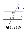 11、如图直线,a∥b,∠1=540,则∠2= 0,∠3= 0,∠4= 0。