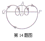 14.如图,POQ是一线段,有一只蚂蚁从A点出发,按顺时针方向沿着图中实线爬行,最后又回到A点,则该蚂蚁共转过_________°.