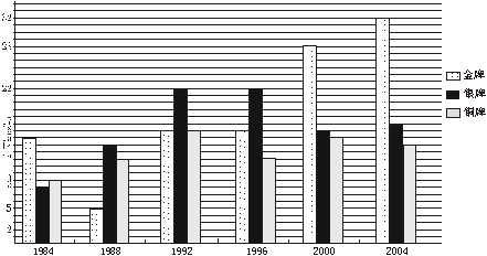 (1)从1984~2004年六届奥运会我国运动员共获奖牌多少枚?