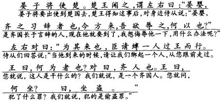 距今二千多年前,我国历史上曾出现过一个群雄纷争的春秋战国时代,其中齐国和楚国是大国,而齐国的强大离不开一个人,此人虽然身材矮小,但能言善辩,口才极好,被派到其他国家执行外交任务,帮助齐国解决了许多外交上的争端,他就是晏子。(晏子原名“晏婴”,“子”是古代对男人的一种尊称。)
