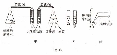 (1)实验一:小球藻在适宜的条件下能快速繁殖。在相同的培养液中,用图甲中的装置(a)和(b)分别培养小球藻(抽去空气),将两装置都放在光下,观察最初的变化,并对装置(a)的B试管与装置(b)的C试管中的小球藻繁殖速度进行比较,其中B试管的变化是