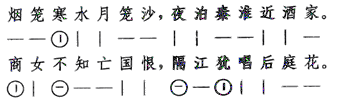 又如《泊秦淮》: