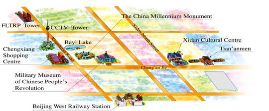 Look at the map in Activity 1 . Find your way from FLTRP Tower to Tian’anmen Square .