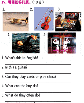 答案: 1. It’s a trumpet. 2. No, it’s a violin. 3. They can play chess.