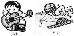 根据下图描述你的同学Jack和Mike的特长,并说明他们想加入哪个俱乐部。