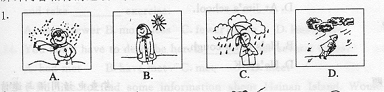 ( 三 )根据每小题你所听到的对话,从A、B、C和D四幅图中找出与所听内容相符的选项。每个对话读两遍。