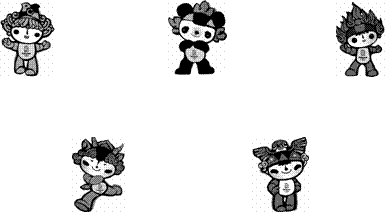 下面是奥运会吉祥物“福娃”的英语说明,请根据其内容,将其序号分别填入适当图案下面的括号内。