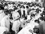 (教师展示人才市场的图片或多媒体播放春节前各大银行排队取钱的画面,并给出一些材料,引出1a。)
