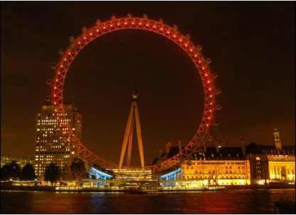 2伦敦之眼:“伦敦眼”是伦敦最吸引的观光点,坐落在伦敦泰晤士河畔的世界最大摩天轮“伦敦眼”将会永久成为伦敦的地标。