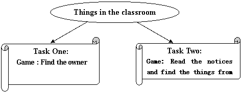 围绕这一主题,教师还可以选择的任务活动有:找主人;猜猜看;比比看;失物招领;寻物启事;你该怎么办?