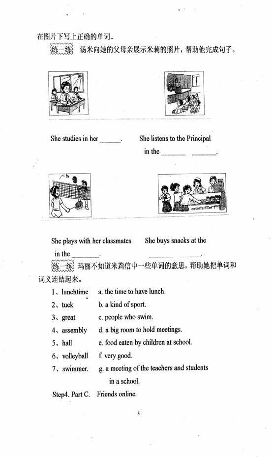 3、课前准备:(1)让学生画一些本校学校活动的图片;(2)让学生了解本校校长、老师,同学的情况,以及自己对所学科目的喜好程度;(3)预习课文(计15分钟)。