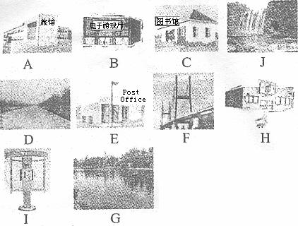 A. 根据句意,选择适当的图片,将图片序号填在题前的括号里,将该单词写在句中的横线上。(10分)
