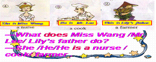 ( ) 3. A. She’s nice. B. She’s a nurse. C. She works in a school.