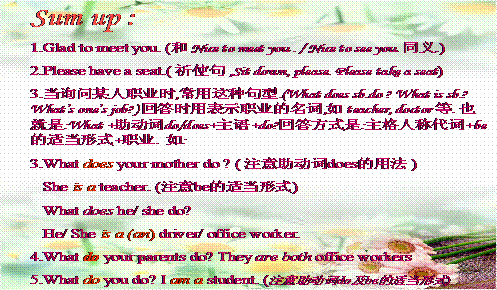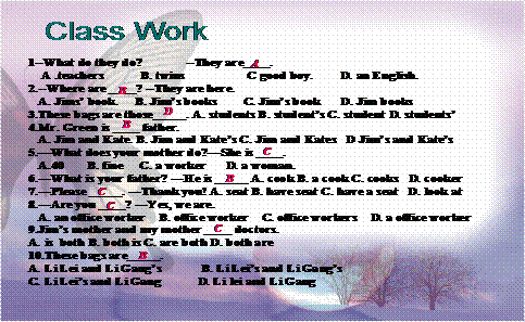 1.Work in groups. Make a survey and complete the chart about parents’ occupations. Then let one student pick out a chart and ask other students to guess like this: