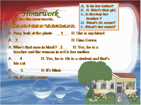 ( ) 1. A. She’s my teacher, Miss Lee. B. She comes from Cuba.