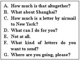 B:I’d like to send this letter by airmail and the other two by ordinarymail, please. 58 .