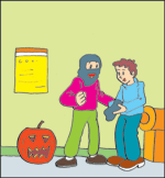 57 在万圣节,我们经常玩“不招待就使坏”的游戏。( trick or treat)
