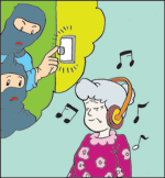When they arrived, they rang the door bell but there was no answer. Their grandmother couldn't hear them because_______2_______(她正在听音乐).