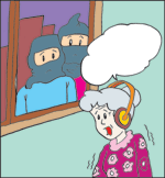 Jimmy and Jerry decided to look through a window. As they were looking, their grandmother saw them. She was shocked(吃了一惊) ! She thought they were real burglars and started to _______3_______(喊救命).