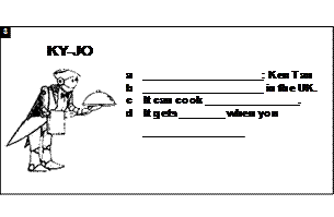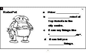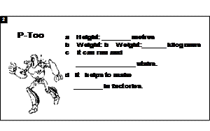 work: S1 You are a salesman working for Top Robots. Try to describe the three robots on sale.S2 ,S3 , S4 You are RoboPet ,P-Too or KY-JO, try to describe yourselves . --Complete the order . --Choose the best seller robot. |