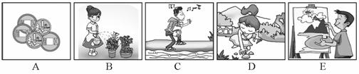 Ⅰ.听句子,选择与句子内容相符的图片。每个句子读一遍。(5分)