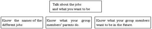 1. 教师向每个小组发放一份关于工作的描述,竞赛看那个小组最先猜出答案,并将本组的谜语提供给全班,让其他组竞猜,这可以将学生的注意力,吸引到课堂上来,并对同学年的谜语加以思考。此活动以小组为单位,让学生通过谜语来猜测工作的名称,猜对者给小组加分。