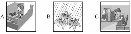 Ⅰ.听句子,选择与句子相符的图片。每个句子读一遍。(5分)