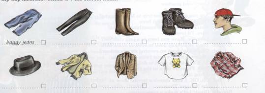 According to the article, which of the clothing items are hip-hop fashions? Check (√)the correct items.