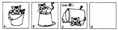 76.根据前三幅图联想,画出第四幅图中Mimi的位置,并用英语表达。