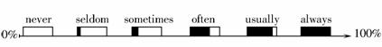 3. (呈现2的图片,要求学生根据图片的意思,试着猜词意。然后用每个频度副词和表示交通工具的词造句。)