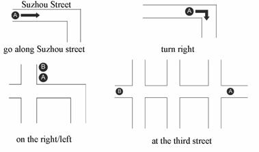 (利用以上地图和几种问路的方式进行操练, 自然过渡到下一步。)