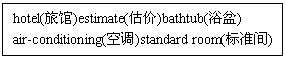 Students learn the new words: bathtub, air conditioning, hotel, reservation, standard