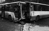 Ss: I can see two broken buses./I can see a bus hits another bus.