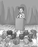 Ss: He is making a speech.
