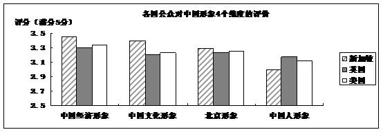 22. 近日,中国传媒大学对北京奥运会前后外国人眼中的“中国形象”进行了调查 ,调查的外国人分别是新加坡、英国和美国,设置的分值为2.5~3.5分之间。调查结果见下表